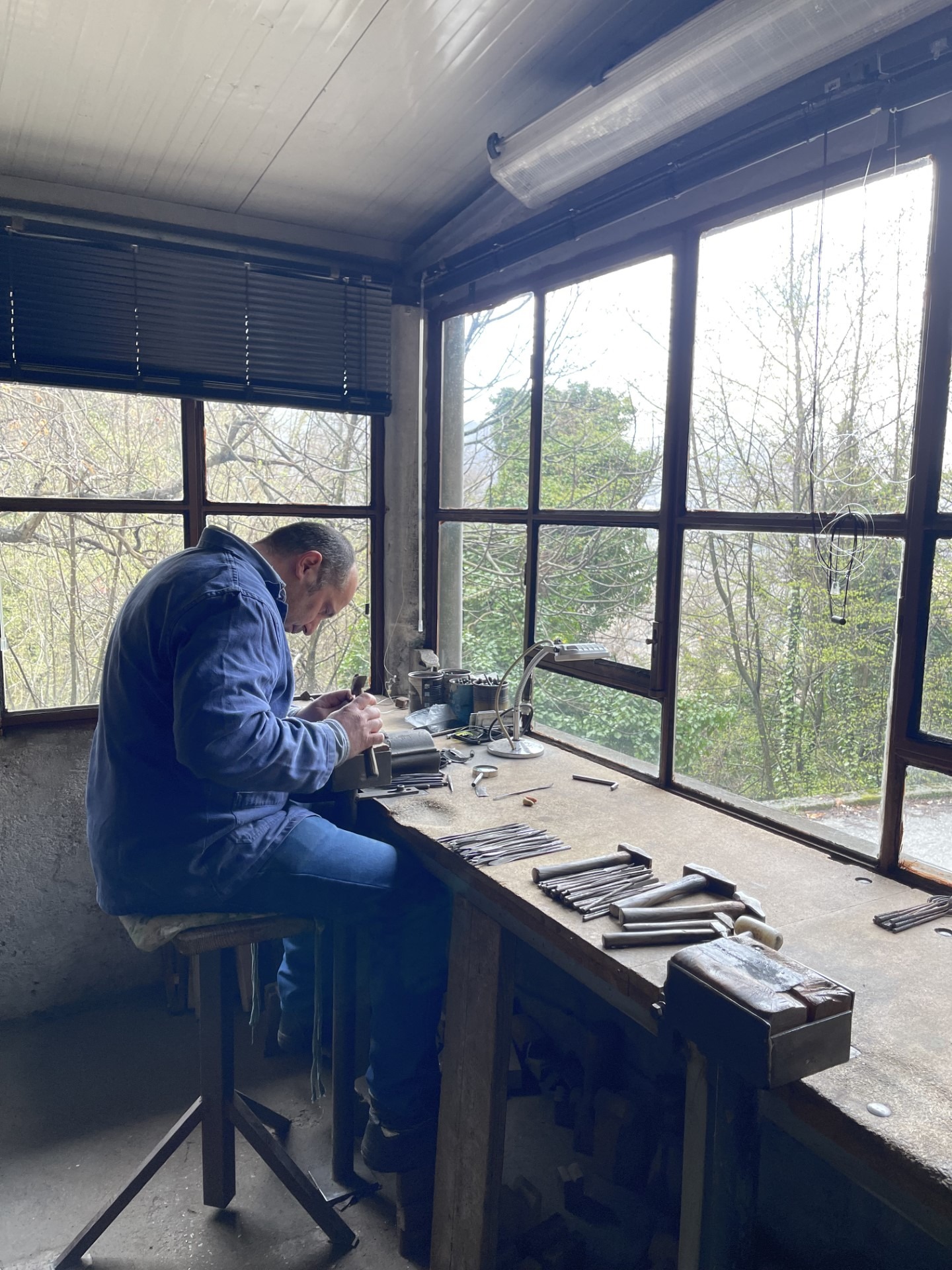 Nestled high in the mountains of Tuscany lies the small village of Pomezzana, home of the family-run business, Milani Utensili. Visiting this idyllic place and meeting the lovely Milani family was a jewel of an experience this past spring during my trip to Tuscany to immerse myself in all things related to the art of stone carving. Imagine meeting the people who hand-made the tools I use daily to create my sculptures! I was thrilled and walked away with a deep admiration for a family that carries on the legacy of metalworking for over 50 years—still using time-honored practices to make stone, wood, and plaster sculptor and artisan tools. They are unique to this industry that defines this region of Italy known as the center of marble and bronze art sourcing and production. I sensed the same devotion and dedication to their work as I do when I am making one of my sculptures- quality, craftsmanship, and love. Here are some pictures of my factory tour: