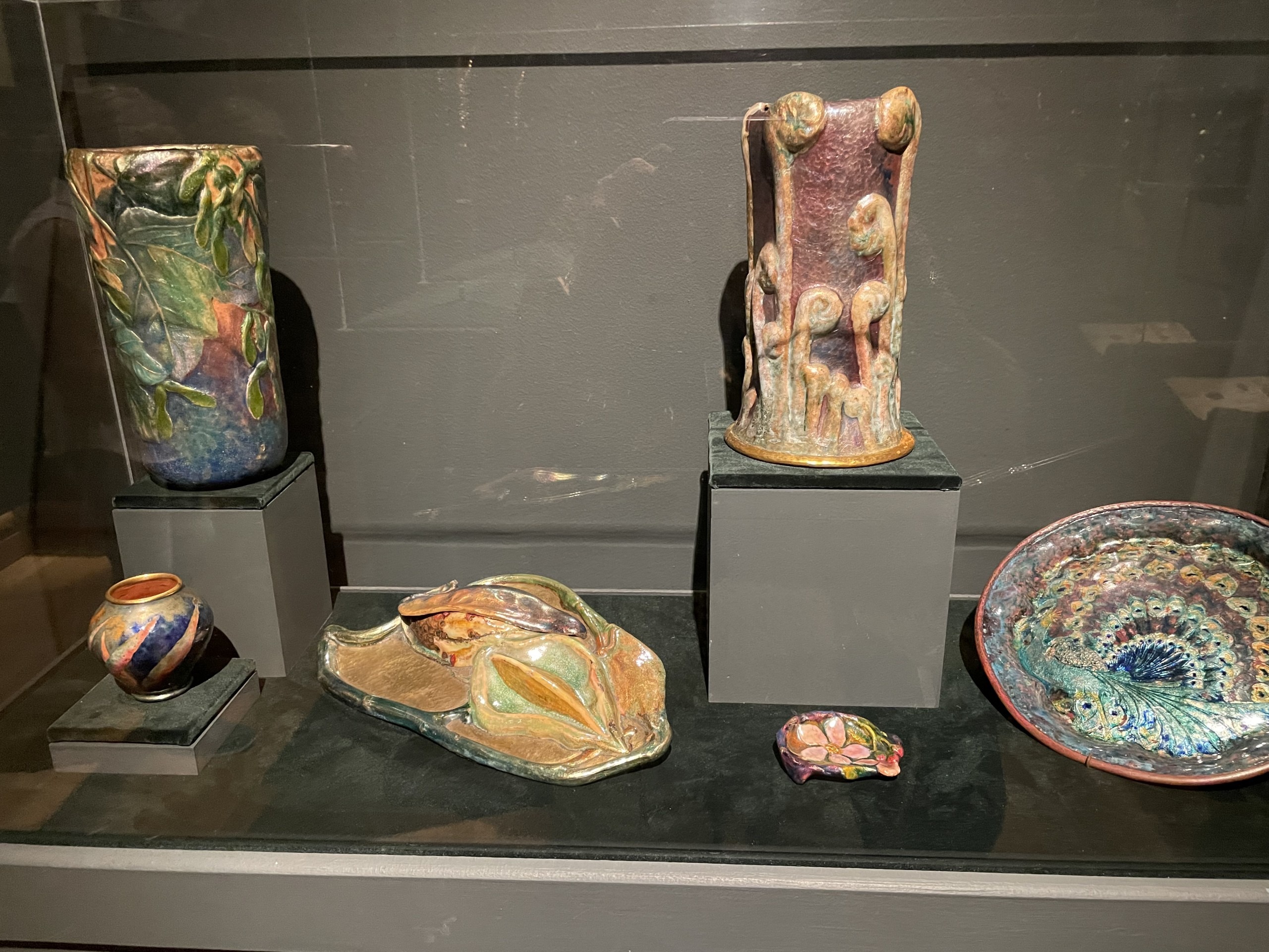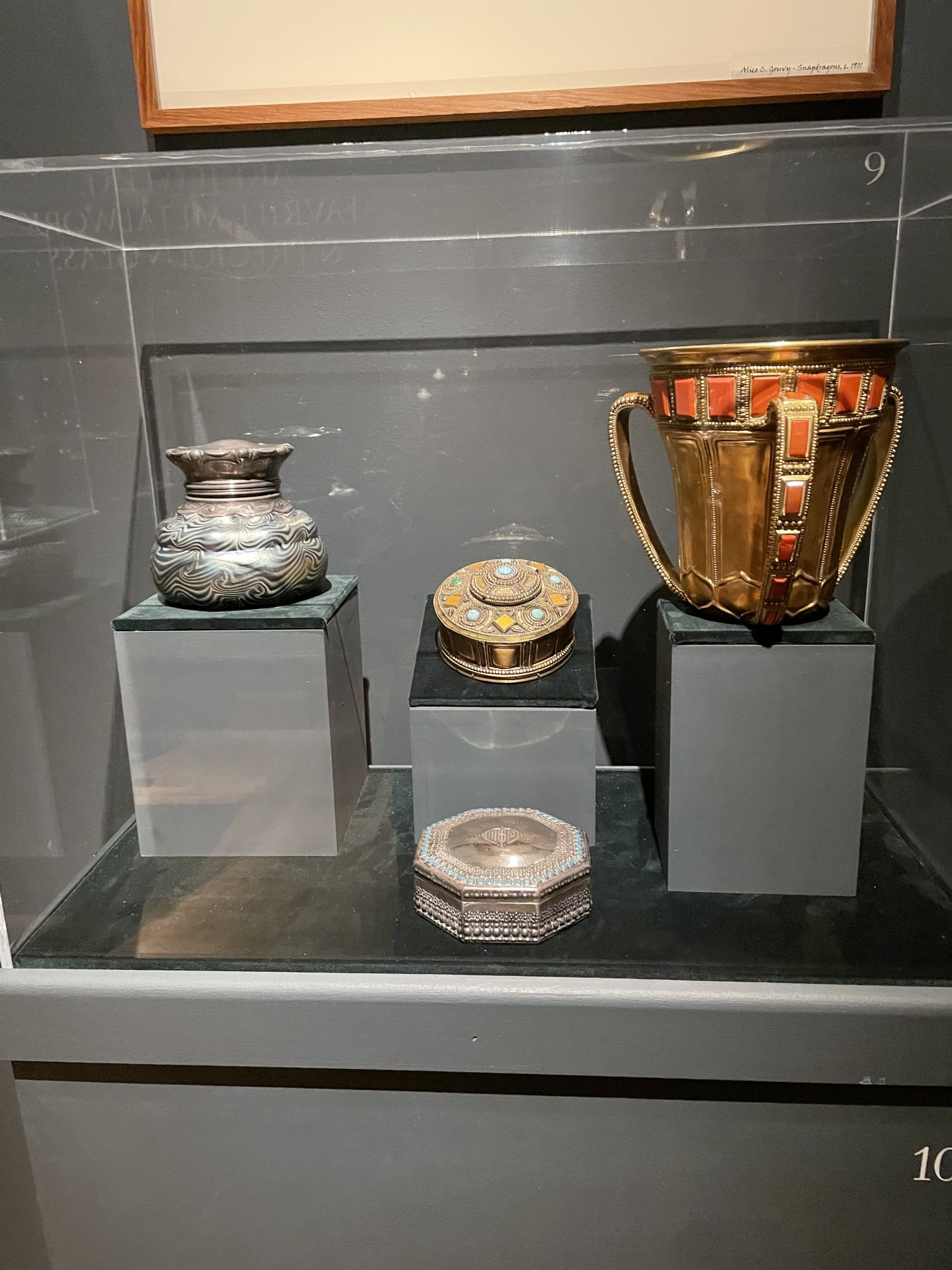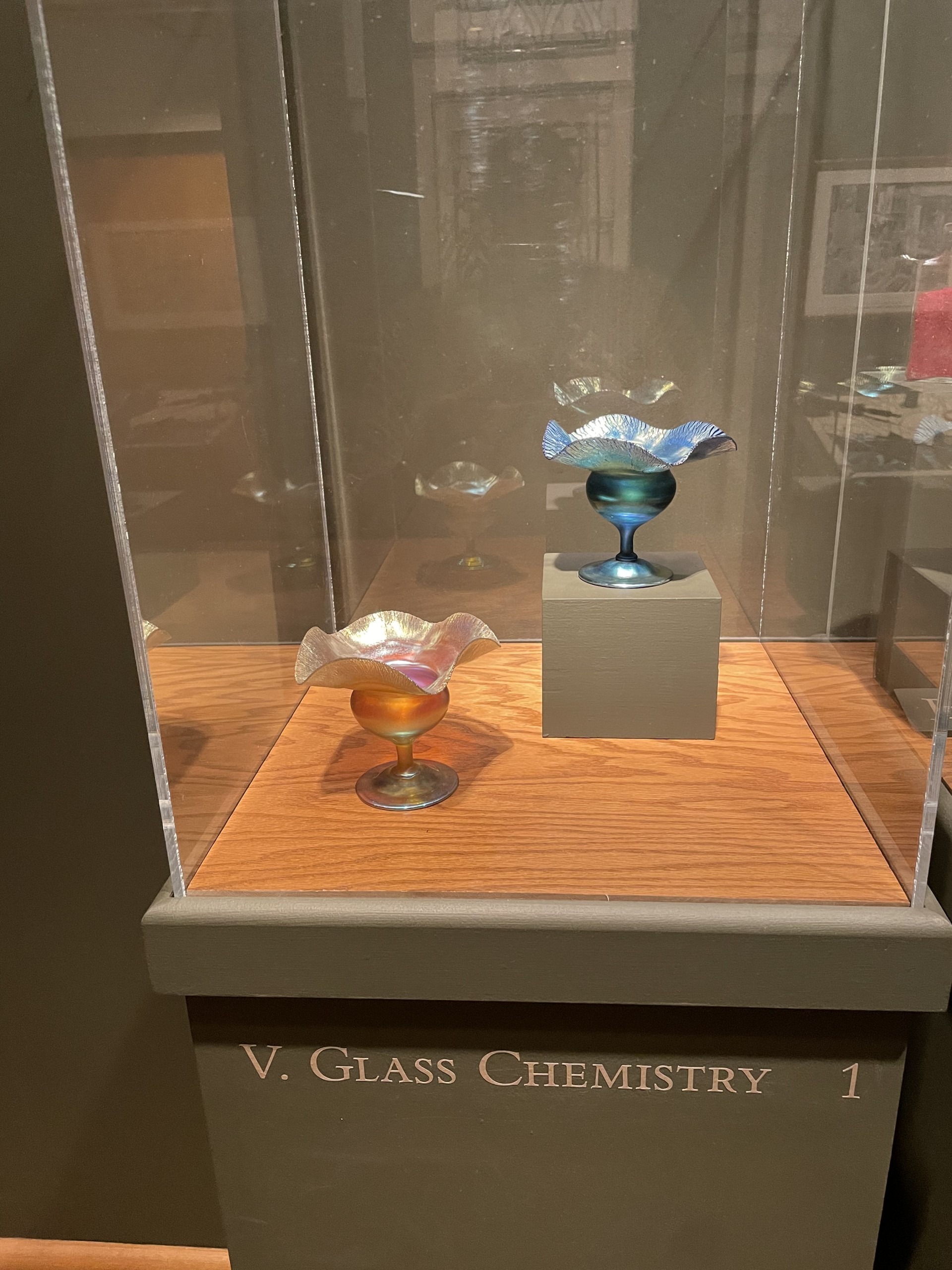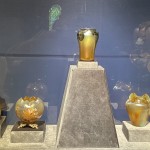 The firm transformed the merely useful domestic objects into something of rare beauty. Tiffany and his artisans mastered this medium of color, form, and technique. The objects were blown into amazing shapes and formulated into brilliant, often lustrous, hues. Of endless variety, some were made with pitted textures, others were layered to produce special effects, and still others were manipulated to create undulating, mesmerizing patterns.