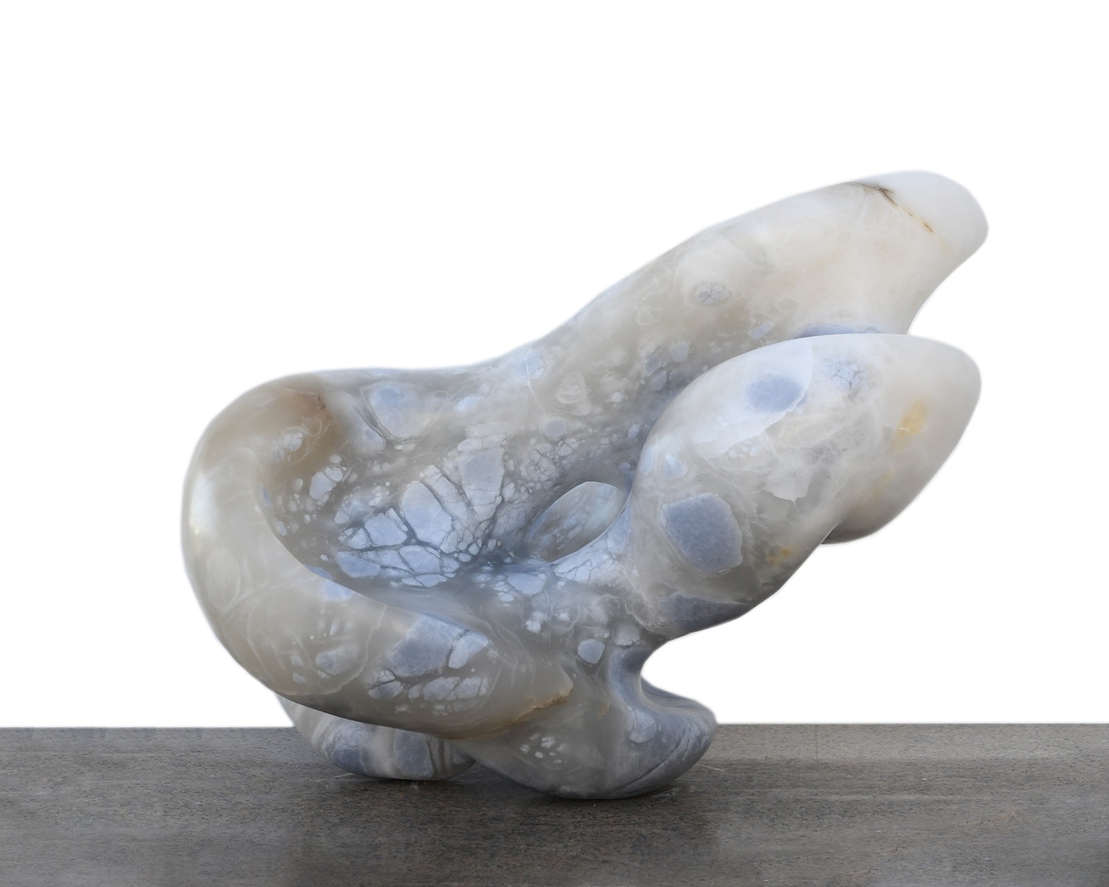 The chalky alabaster that is quarried and worked in this region formed in the Miocene period by a process of sedimentation and concentration of calcium sulfate and seawater. Its malleable quality made it particularly suitable for small, richly detailed motifs. It can be opaque or translucent and come in a variety of colors. For me, alabaster has a mysterious, sensual quality. Carve deeply into it, especially the translucent type, and you’re likely to discover the most wonderful surprises of color and character. My sculpture “Love” pictured below is one example.